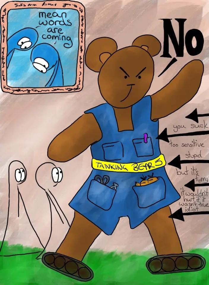 It feels a bit vulnerable to do this series, and I don't know if it will work/entertain, but that's what making art is for. Lots of love and hugs to all the bear tanks (momma bears, papa bears and baby bears).